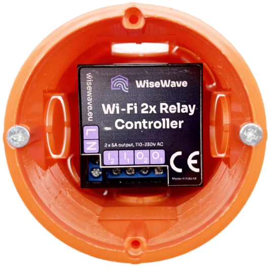 The whole dual-channel relay module fits perfectly into flush-mounted box!
